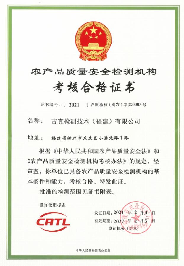 吉克檢測技術(shù)(福建)有限公司,位于福建省漳州市龍文區(qū)小港北路1號,于2019年8月注冊成立,是一家獨(dú)立的第三方檢測公司。公司已經(jīng)通過檢驗(yàn)檢測機(jī)構(gòu)計(jì)量認(rèn)證(CMA)、農(nóng)產(chǎn)品質(zhì)量安全檢測機(jī)構(gòu)資質(zhì)認(rèn)證(CATL),獲得中國合格評定國家認(rèn)可委員會(CNAS)認(rèn)可。公司本著“嚴(yán)謹(jǐn)、規(guī)范、高效、協(xié)作”的原則和對客戶及社會高度負(fù)責(zé)的精神,充分利用本公司優(yōu)質(zhì)的檢測環(huán)境、先進(jìn)的檢測設(shè)備和專業(yè)的技術(shù)人員,第一時(shí)間為客戶提供科學(xué)、公正、準(zhǔn)確的檢驗(yàn)檢測報(bào)告。       公司實(shí)驗(yàn)室面積1100多平方米,儀器設(shè)備兩百多臺(套),固定資產(chǎn)一千多萬元,在職員工31人,技術(shù)人員中的中高級職稱及同等能力人數(shù)占60%以上。我們的服...
